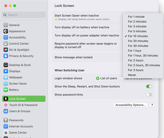 Alternativamente, puedes descargar una aplicación de terceros como Amphetamine. Es infinitamente más potente (pero sigue siendo fácil de usar); sus comandos y configuraciones basados en sesiones pueden servir a menudo como una gran ventaja, asumiendo que necesites tal nivel de control preciso.