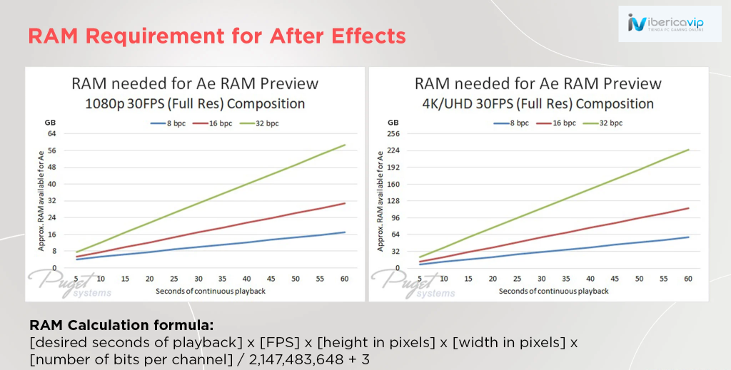Para el renderizado de video, tener una capacidad de RAM lo suficientemente alta como para almacenar tus archivos de proyecto es clave para mantener un rendimiento fluido mientras trabajas en la línea de tiempo de edición.