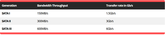 - SATA III es la interfaz de tercera generación y tiene una tasa de transferencia de 6Gb/s con un rendimiento de ancho de banda de 600MB/s.