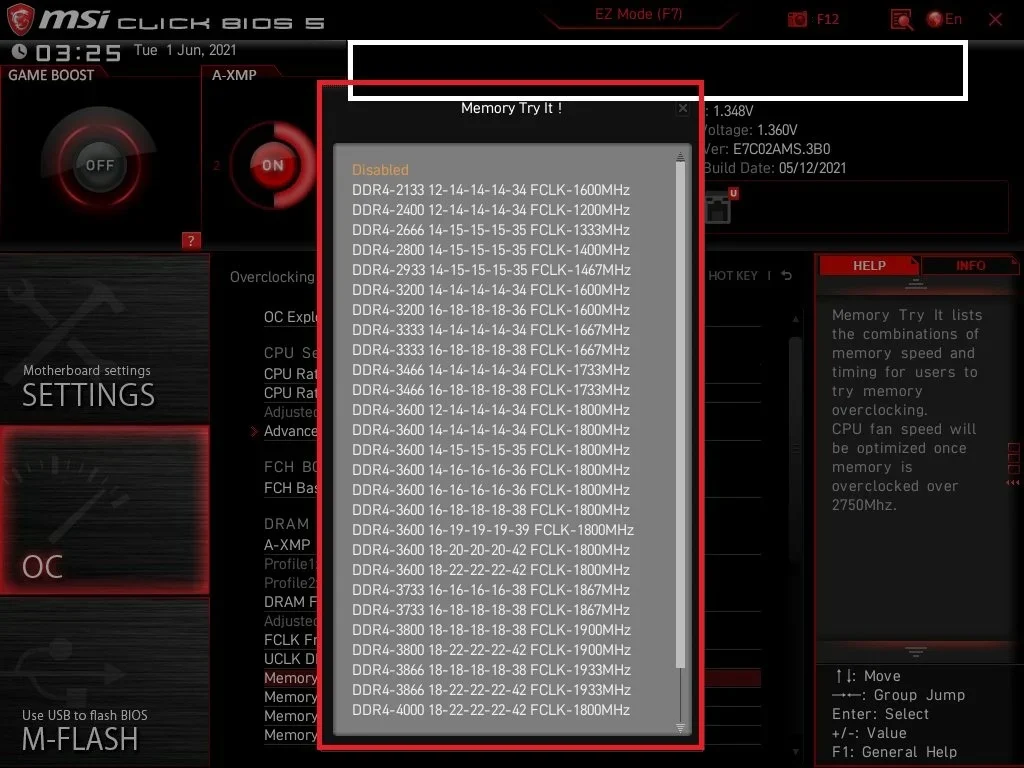 Los perfiles XMP son ajustes preestablecidos de latencia y frecuencia. Crédito de la imagen: MSI