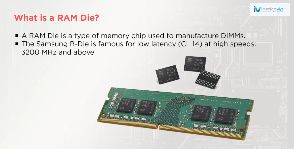 Lo que distingue a Samsung B-Die es su especificación mínima garantizada de DDR4 funcionando a 3200 MHz y una Latencia CAS de 14.